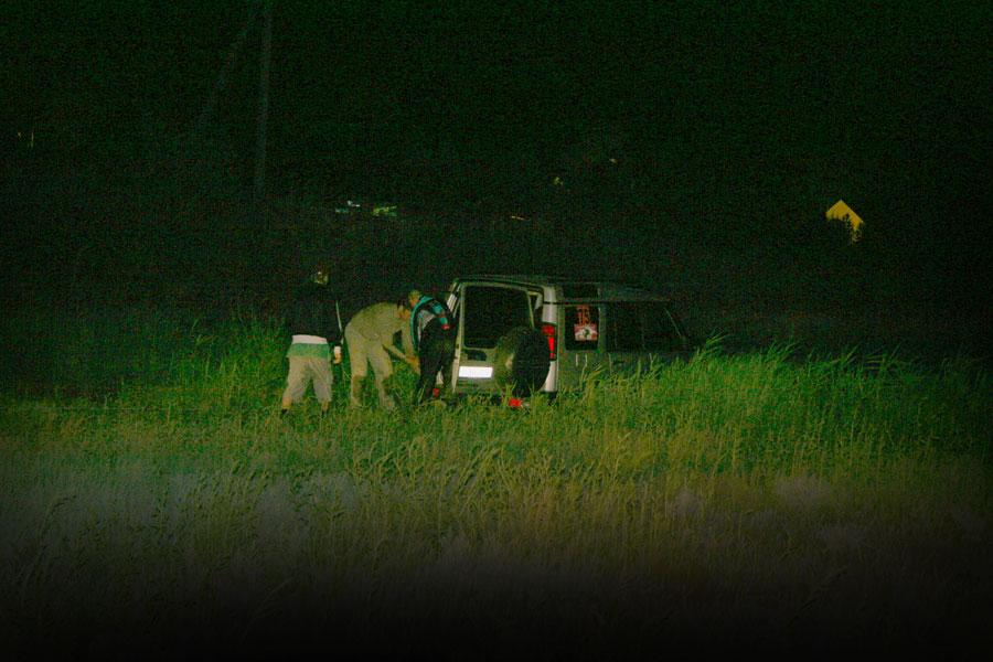 - появление "Лендровера" с двумя "Нивами", которые словно утята, ковыляли за мамкой;