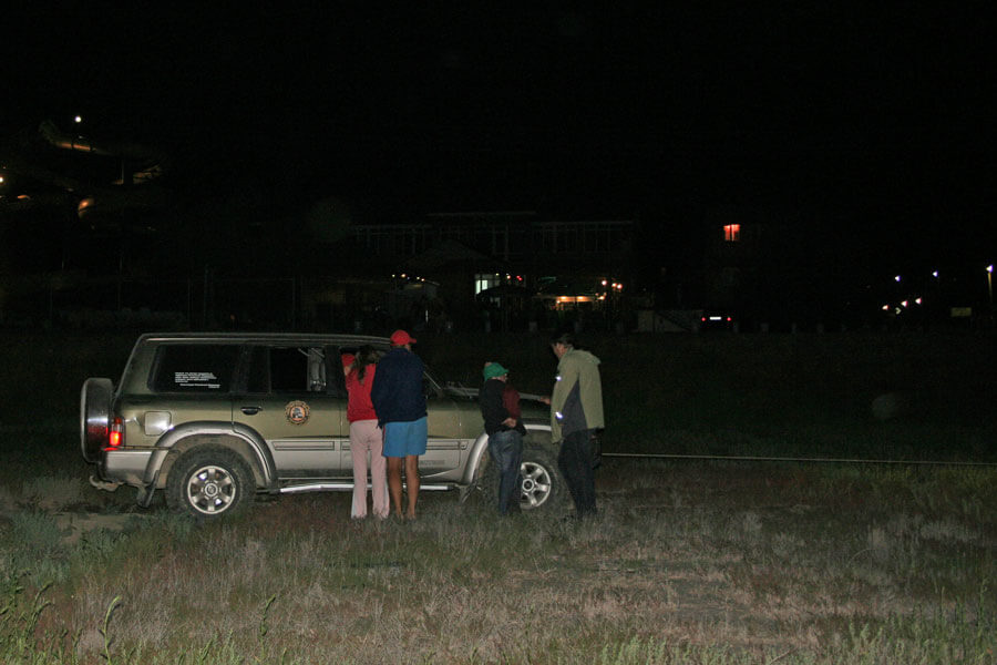 В общем, станичники были правы. Лучше не соваться. Однако, первой машине проскочить удалось. Остальные проходили по её следам, с "телефонным" штурманом. Максим из Питера, на Лендровере весом более двух тонн, в сопровождении двух новороссийских "Нив", вообще не заметил каких-либо препятствий, хотя именно его машина вызывала наибольшие опасения из-за веса. Также легко прошли майкопчане, видимо по причине отсутствия Лёлика и Болека Медведя - главных оффроудных шоуменов Северного Кавказа. Лишь в сумерках понадобилась эвакуация "Лендроверу" из Новороссийска, который из-за темноты взял неверный ориентир.