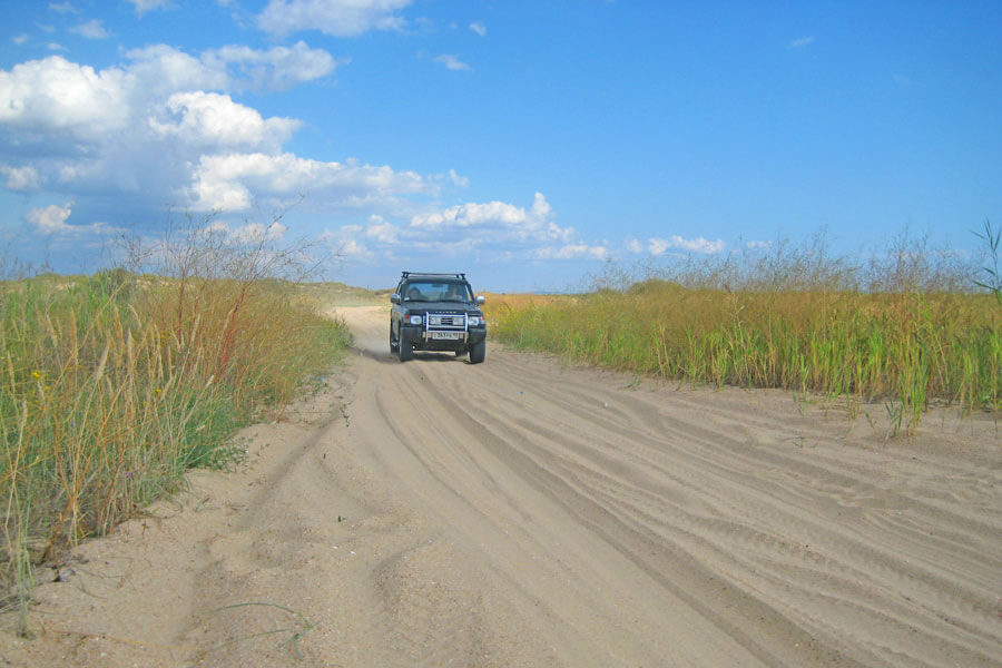 Заезд на территорию летнего Разбушлата незаметно превратился в занятную головоломку. На шлагбауме, в Благовещенской, приветливые станичники несколько раз повторили: там сидели все, лучше не надо. Речь шла о слабочитаемой тропе по высохшему лиману. С другой стороны, из Витязево, дорогу преграждали свеже-нарытые песчанные двухметровые валы. И как раз с ними всё было ясно - копать песок сплошное удовольствие. А вот "сидеть" в лимане - процедура затягивающая, в прямом смысле. С неё и начали...
