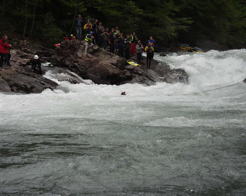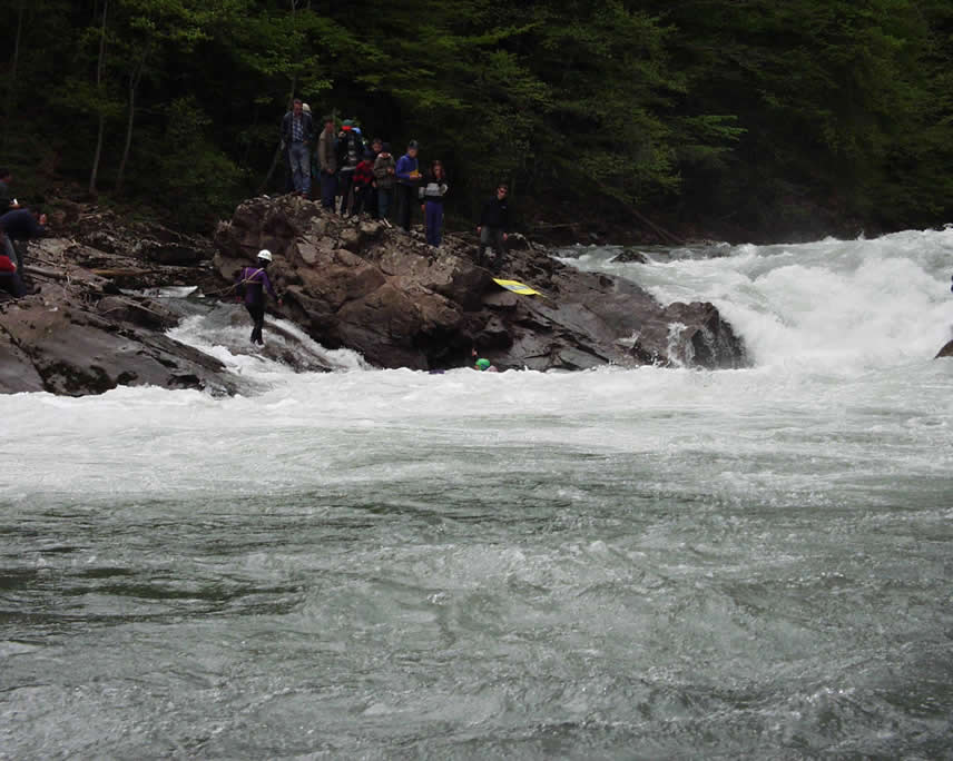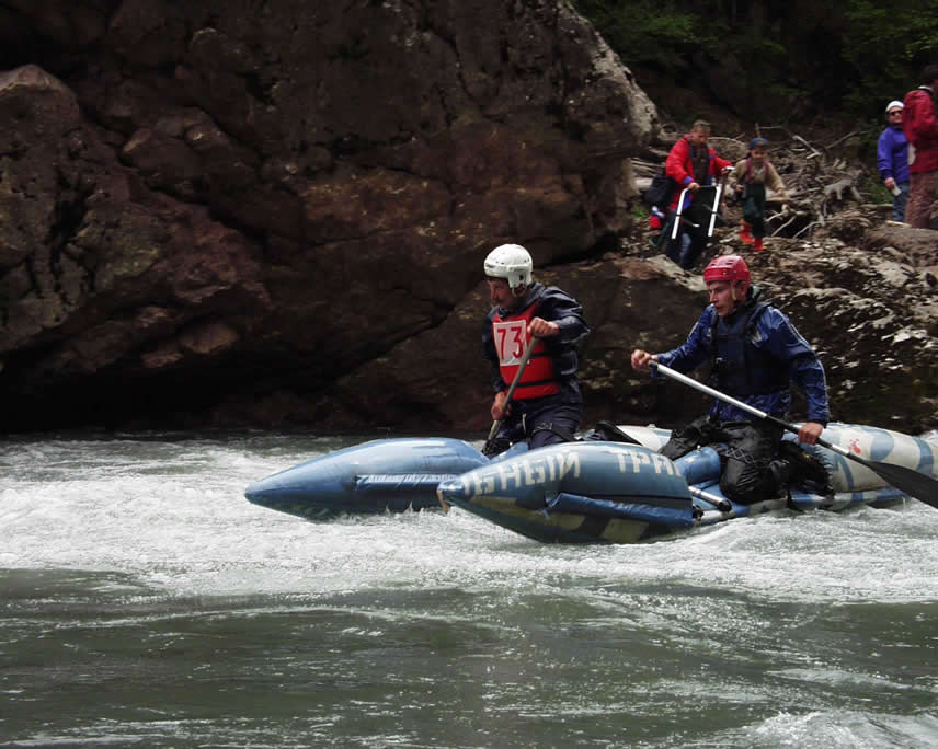 К сожалению, о соревнованиях писать нечего. Меньше пятидесяти участников, несостоявшееся командное первенство - команд было только две, некий расплывчатый статус мероприятия под названием XXII ОТКРЫТЫЕ КОМПЛЕКСНЫЕ ФИНАЛЬНЫЕ ВСЕРОССИЙСКИЕ СОРЕВНОВАНИЯ ПО ВОДНОМУ ТУРИЗМУ "ТУРИСТСКОЕ МНОГОБОРЬЕ" - всё это даёт повод для основательного пессимизма на предмет будущности Интерралли. Цитирую фразу с сайта организаторов: "В шоу-состязании на одной из красивейших рек юга России - Белой встретятся истинные атлеты белой воды, сильнейшие спортсмены и туристы-водники России. Также приглашены команды других стран." Так вот. Кто такие "...истинные атлеты белой воды..." не знаю, а про речку - чистая правда. Всё остальное - без комментария. Заканчивая мысль, cошлюсь на мнения участников-ветеранов, оценки которых для меня важнее собственных - соревнования 2001 года самые слабые за всю их историю. И хватит об этом.