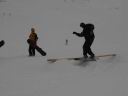 смеются над лыжником |