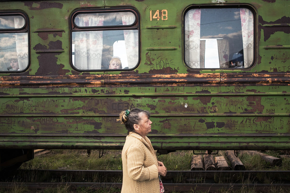 #RU 24.08.2015, Россия, Архангельская обл.. Жанровая фотография. Вагон поезда стоит в поселке на станции Липаковской узкоколейной дороги. Фото: Алексей Лощилов/Коммерсантъ