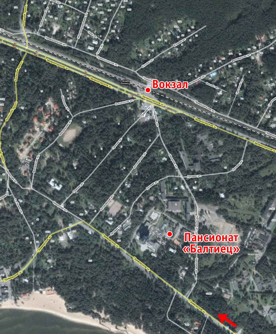 ВНИМАНИЕ! Следовать далее по Приморскому шоссе до Репино. КАК? Едем по Приморскому шоссе, проезжаем г. Сестрорецк, главная дорога через кольцо уводит нас направо. Минуя Сестрорецк ЕДЕМ, ПОКА шоссе не разделит ЖИВОПИСНЫЙ ПЕРЕЛЕСОК ТАК, что шоссе становится ОДНОСТОРОННИМ!