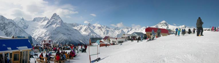 Как уже сообщалось ранее, в субботу утром активисты ДоСкиНаза прибыли в Белоснежку, собираясь немедленно приступить к своим непосредственным обязанностям – конкретному изведению хитрых лыжников (далее ХиЛы). Новичкам напомню расшифровку транскрипции – ДоСкиНаз это «Домбайский отряд Специального конкретно изводительного назначения». При определении стратегии, на месте боевых действий, выяснилось, что количество лыжников в разы превосходит численность отряда. Нас было как всегда плюс Анис (ИксКей). В данных условиях Фельдмаршал счёл прямое боестолкновение неуместным и разработал ЕПС (Единственно Правильную Стратегию). И первым же спуском мы ушли на Русскую! И всех обдурили (правда, мне показалось, этого никто не заметил).