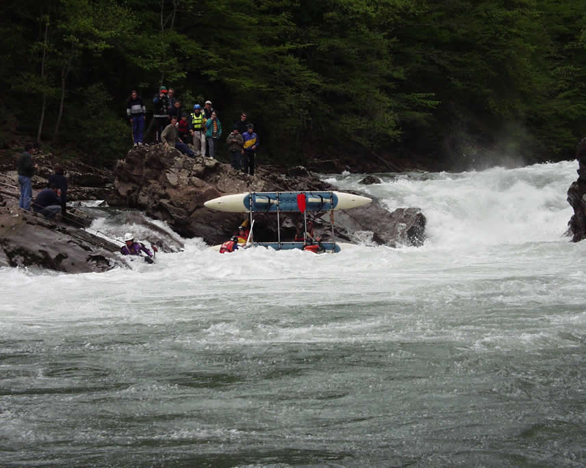 К сожалению, о соревнованиях писать нечего. Меньше пятидесяти участников, несостоявшееся командное первенство - команд было только две, некий расплывчатый статус мероприятия под названием XXII ОТКРЫТЫЕ КОМПЛЕКСНЫЕ ФИНАЛЬНЫЕ ВСЕРОССИЙСКИЕ СОРЕВНОВАНИЯ ПО ВОДНОМУ ТУРИЗМУ "ТУРИСТСКОЕ МНОГОБОРЬЕ" - всё это даёт повод для основательного пессимизма на предмет будущности Интерралли. Цитирую фразу с сайта организаторов: "В шоу-состязании на одной из красивейших рек юга России - Белой встретятся истинные атлеты белой воды, сильнейшие спортсмены и туристы-водники России. Также приглашены команды других стран." Так вот. Кто такие "...истинные атлеты белой воды..." не знаю, а про речку - чистая правда. Всё остальное - без комментария. Заканчивая мысль, cошлюсь на мнения участников-ветеранов, оценки которых для меня важнее собственных - соревнования 2001 года самые слабые за всю их историю. И хватит об этом.