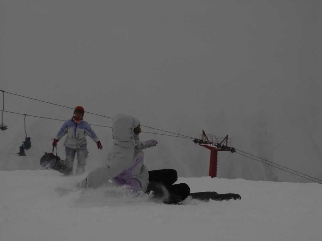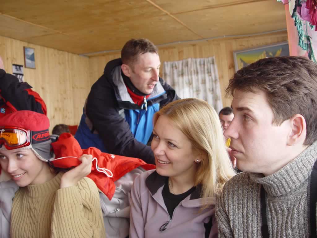 лыжницы смотрят на бордеров с обожанием |