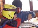 может сидеть рядом с лыжницей.