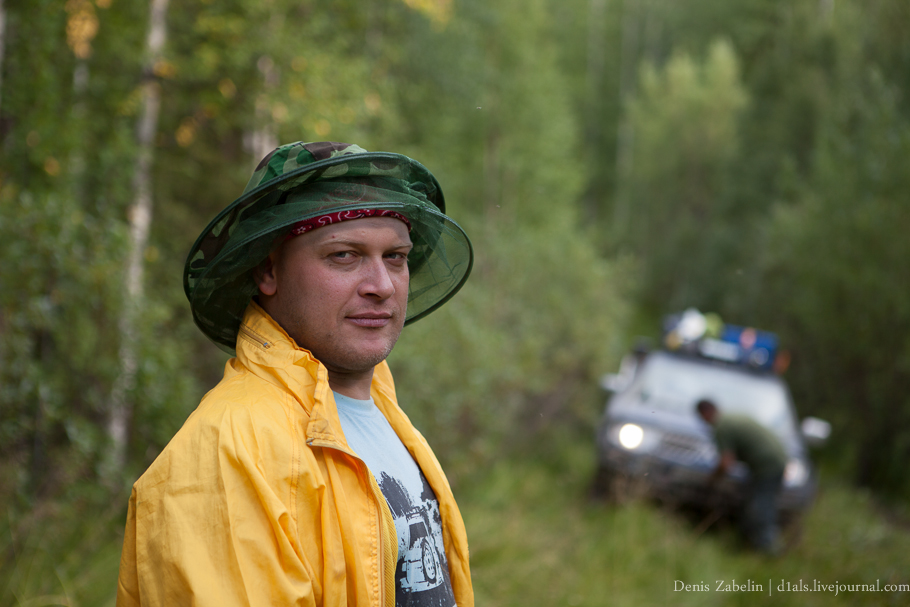 Андрей же на <свамперах> так же не обошелся без лебедки, несмотря на размер колес и довольно низкое давление. Свампера при нажатии на газ получали уверенную команду <копать тут> и колея тут же обретала воистину безграничную глубину. Вот так, метр за метром, мы проводили своё время, пока в какой-то момент моя машина не отказалась двигаться даже на миллиметр через блок. Пришлось на помощь привлекать <хайджек>. Да, мы настолько срослись с глиной, что без помощи этого приспособления лебедка физически бы не вытащила машину в подъем через блок.
