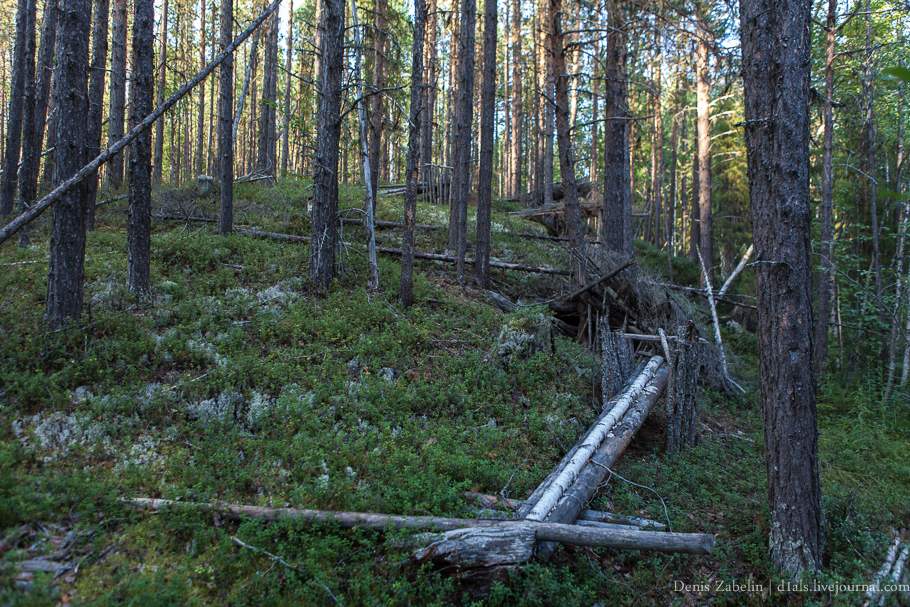 Темнеет, становимся лагерем перед ручьем Бобров. Осматриваем окрестности лагеря и наблюдаем разоренный муравейник - медведи шалят.