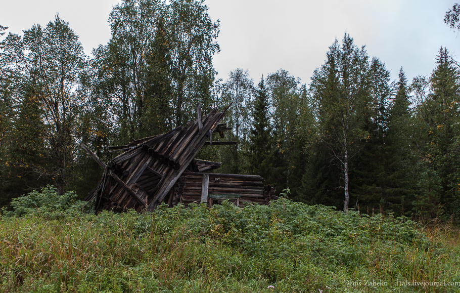 Осматриваем урочище. Встречаются следы выпаса скота, наверное добираются пастухи из Усть-Кымы. Виднеются остатки нескольких разрушенных изб.