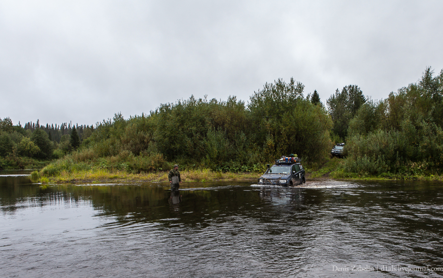 Поднялись на плато с высотой около 200 метров, появились чахлые березки, начались подзабытые уже болота. Очередной день пролетел почти незаметно. АКПП у Олега переходит в аварийный режим уже несколько раз в минуту. Решаем, что пора меняться местами. Меня пропускают вперед, мы проходим ещё несколько сотен метров и разбиваем лагерь.