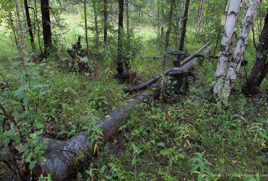 Дорога начинает постепенно ухудшаться. Болота окончательно закончились. Появились камни. Мы с тревожным чувством, ожидаем начала размытых и жестких глиняных подъемов. В тайге стали попадаться части буровых установок, заботливо оставленные советскими геологами. С огромным интересом осматриваем эти изделия, пытаемся найти дату выпуска этого металлолома, но безуспешно. Таблички заботливо кем-то демонтированы.