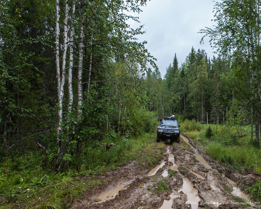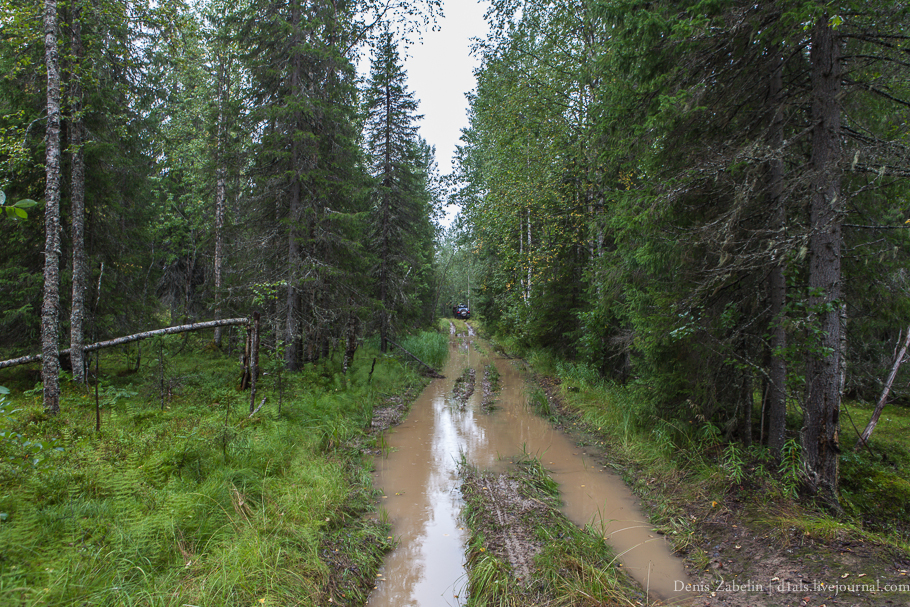 В действительности же, от Нижнесульской до Косомской оказался сильный рельеф с небольшим, но частым перепадом высот в 50-70 метров. Очень яркий отрог Тиманского Кряжа. Как следствие, сильно разбитые и глубокие глиняные колеи с промоинами.