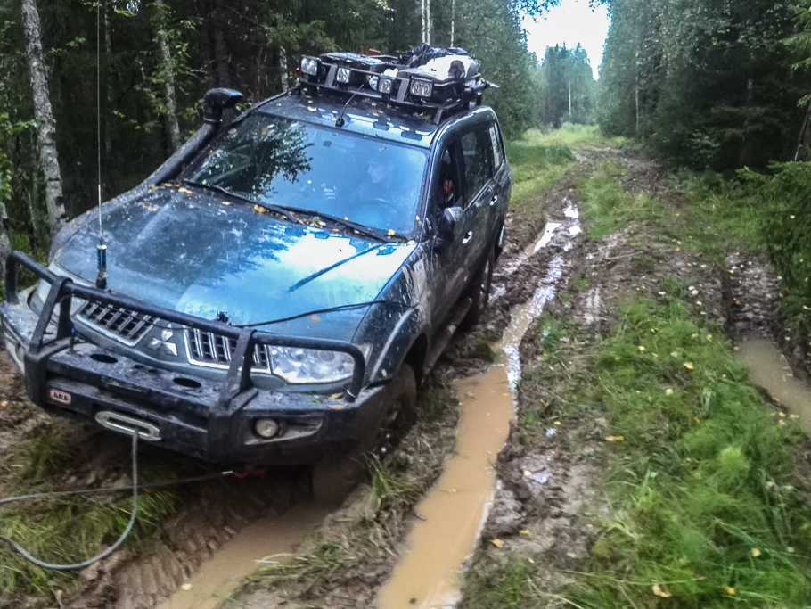Понимаем, что сейчас нам нужен клиренс, я поднимаю давление до 1,4 атм, Олег до 2,5атм и начинаем идти ходом. Большинство колей заполнены водой и в них достаточно глубоко. АКПП Олега напоминает о себе все чаще и чаще в самые ответственные моменты. Даже у самых оптимистично настроенных членов команды стали появляться мысли, что АКПП может не выдержать и машина встанет в любой момент. Такое ощущение, что прошли сотни тяжелых УРАЛОв в серьезную распутицу.
