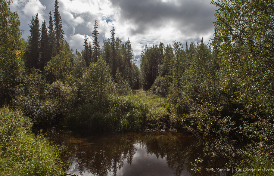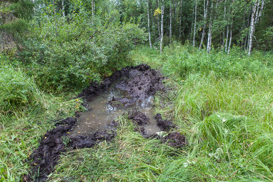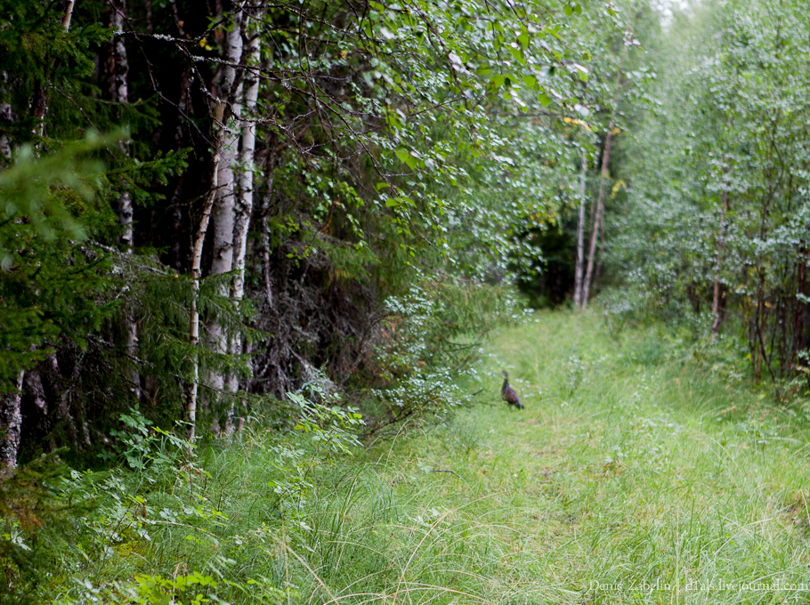 Тракт, по мере удаления от мыльских болот, становится суше, появляются лесные болота, и, чувствуется отдаленное приближение отрогов Тиманского кряжа. Глухари спокойно прогуливаются по тракту.
